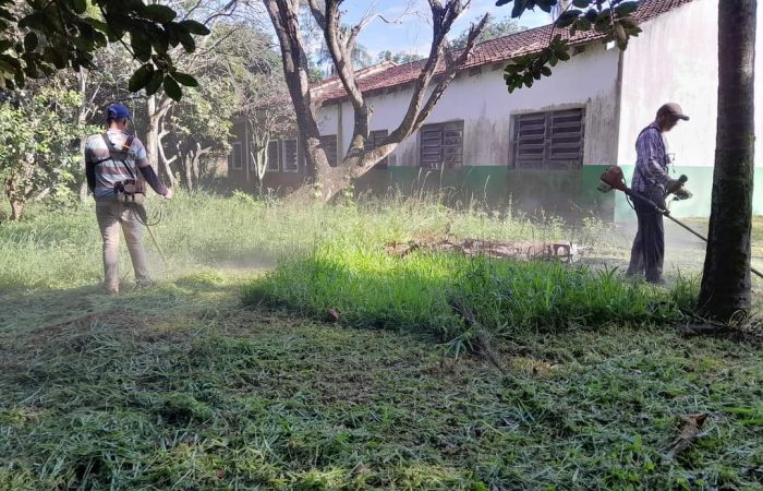 Funcionarios de Aseo Urbano con servicio de limpieza del predio de la Escuela de Potrero Yapepó. Administración Municipal Prof. Javier Morán #JuntosSeguimosCreciendo