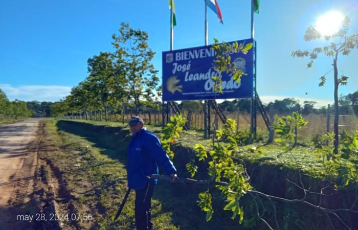 Funcionarios de Aseo Urbano realizando trabajos de limpieza en el acceso a Potrero Yapepó. Prof. Javier Morán Administración Municipal #JuntosSeguimosCreciendo